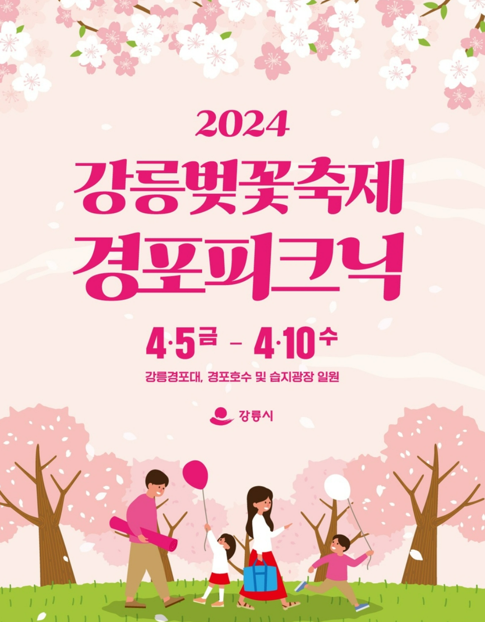 2024 강릉 벚꽃축제가 꽃샘추위로 인해 당초 3월 29일부터 4월 3일까지 예정되었던 축제가 벚꽃의 개화 시기를 맞추기 위해 4월 5일 금요일부터 4월 10일 수요일까지 6일간 열리는 것으로 1주일 연기가 되었습니다.