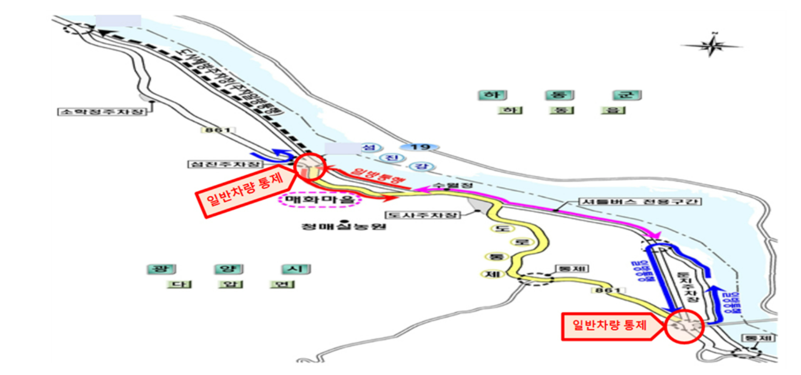 - 운행노선 : 다압면 둔치 주차장 매화축제 행사장 (왕복)