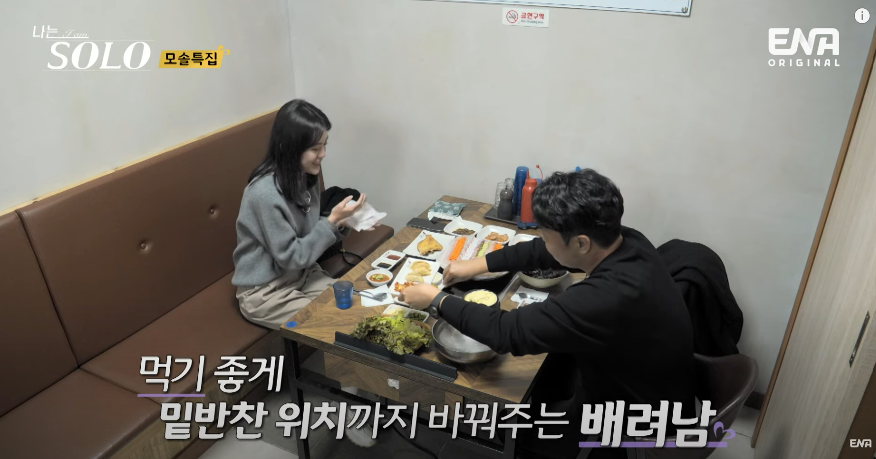 영철은 순자에게 또 한 번 쌈을 싸주는가 하면, 손금을 봐주며 자연스레 손을 잡습니다. 모솔 맞나??