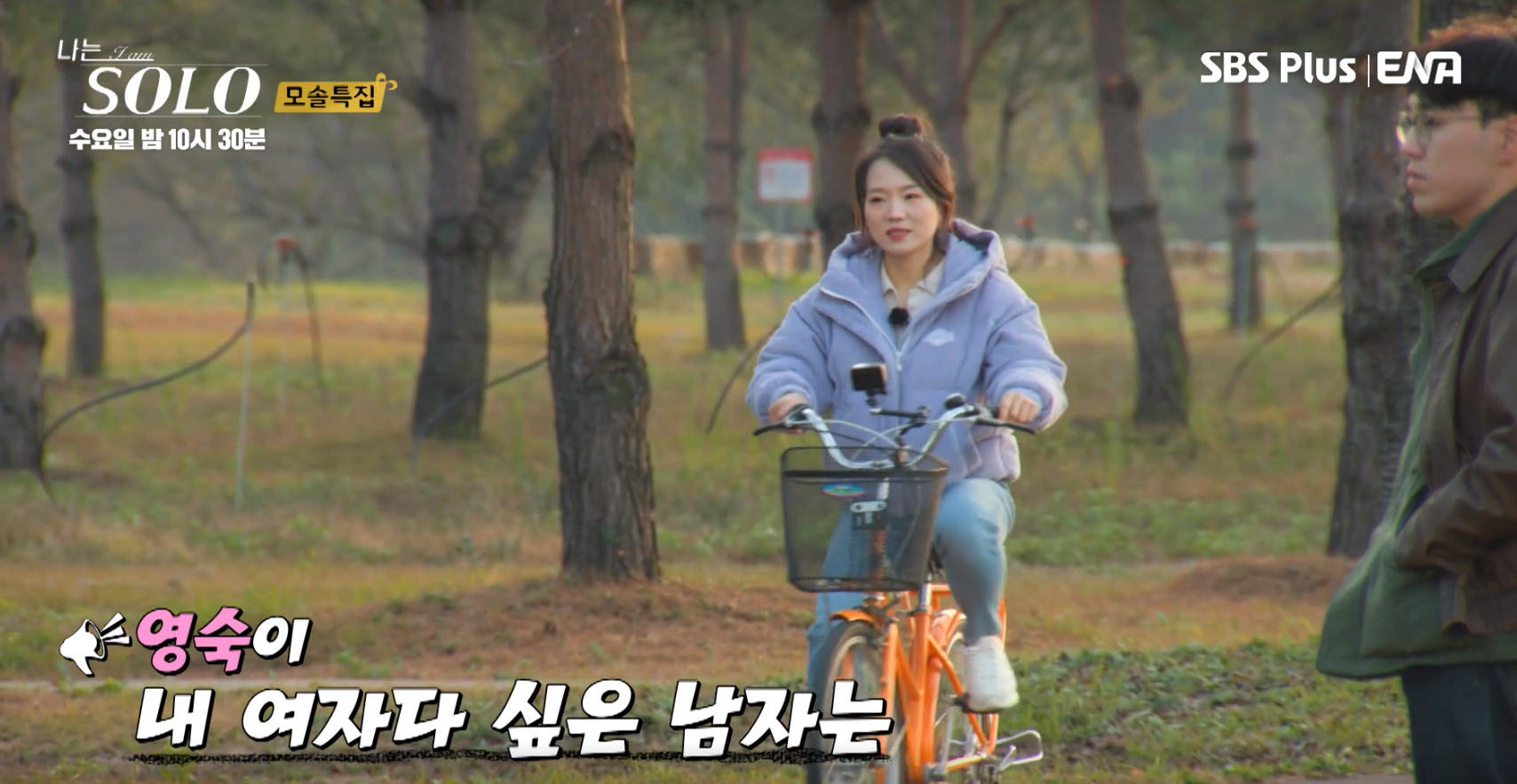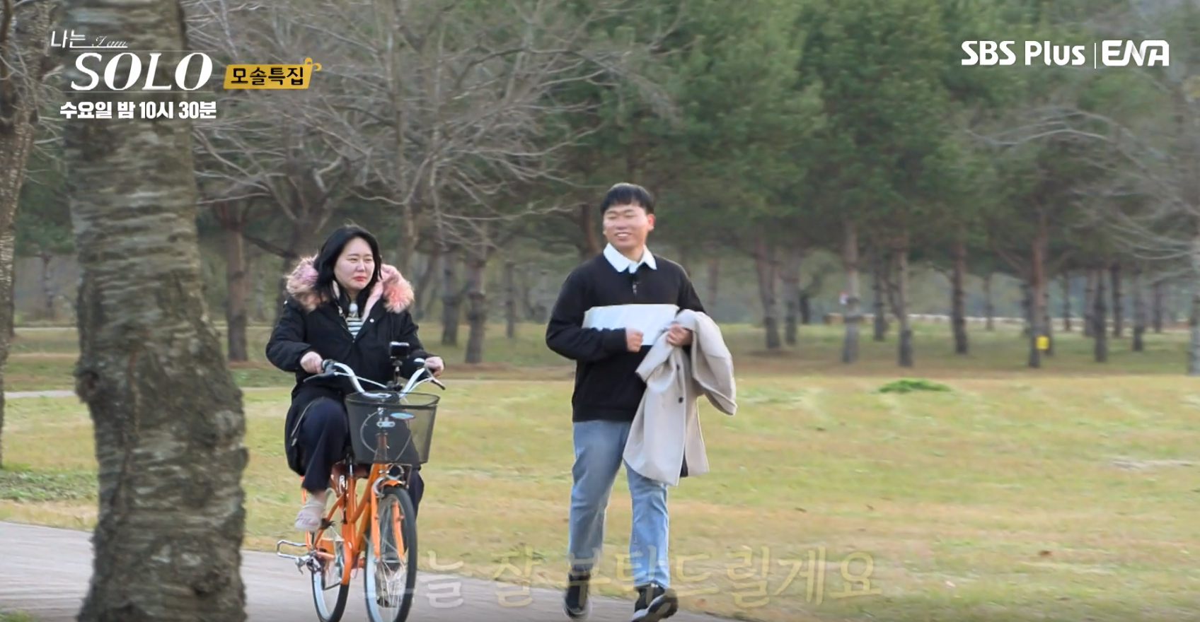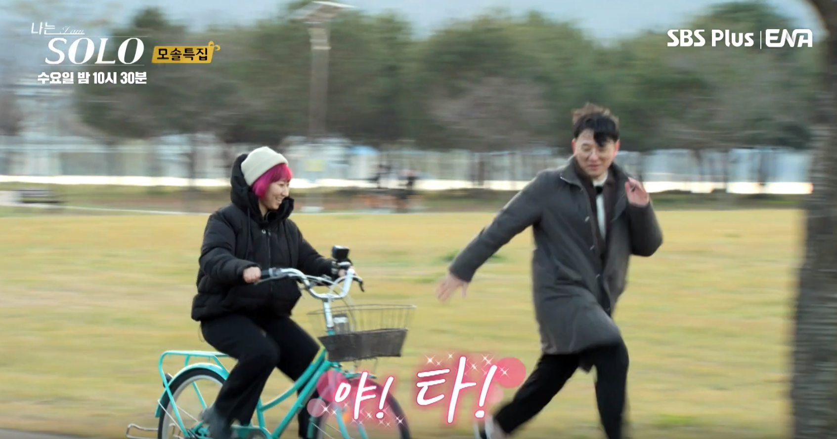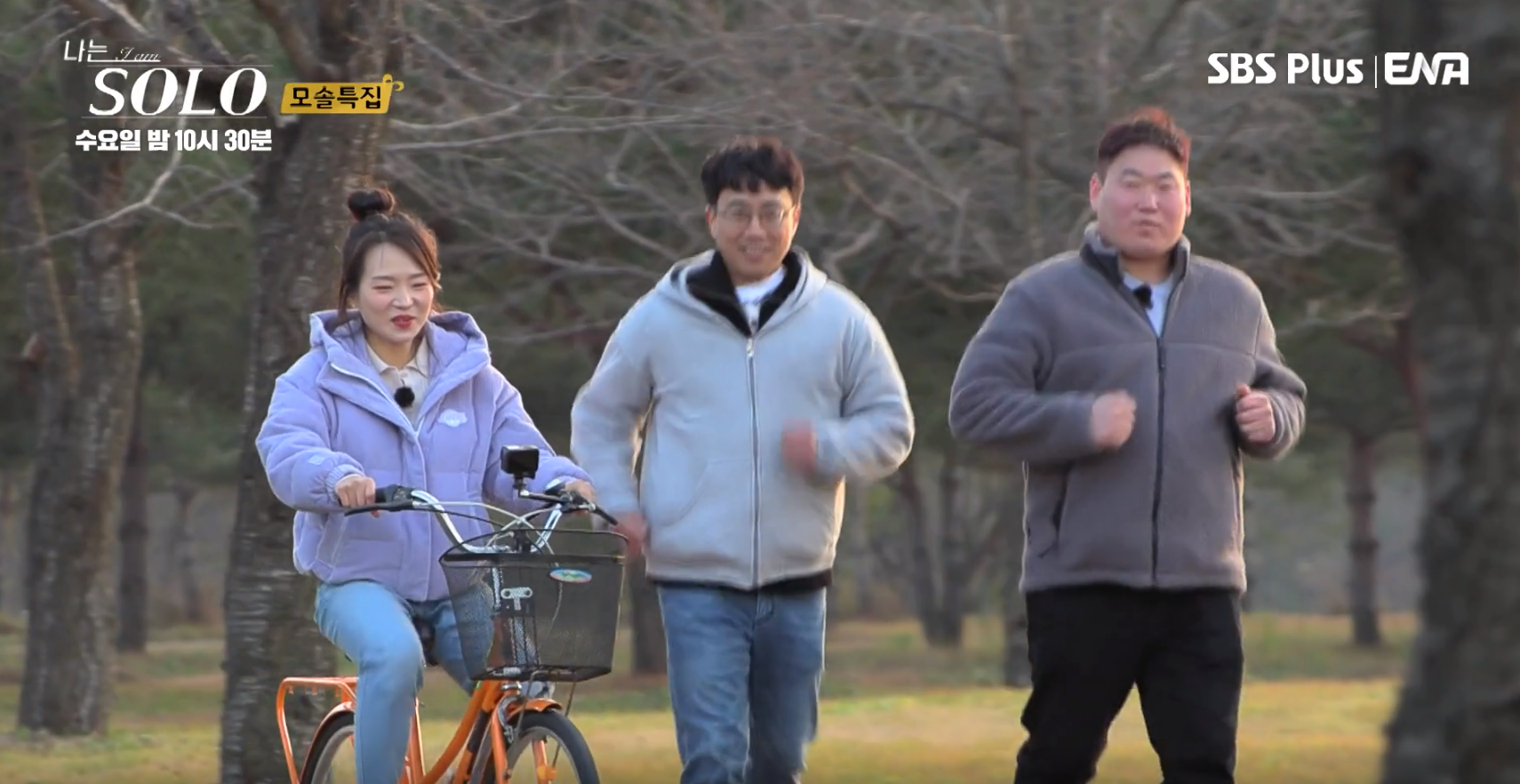 영숙의 자전저 곁은 같이 따라 뛰는 광수... 그리고 영철...
