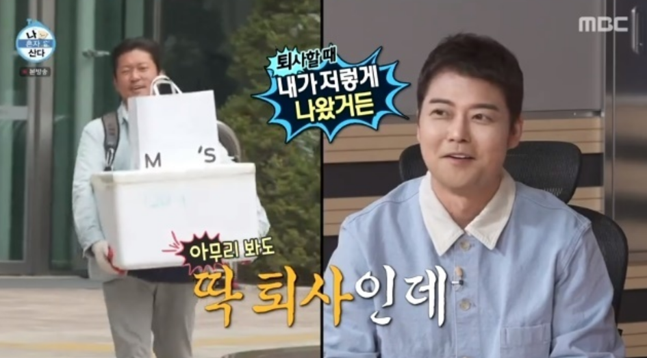 나 혼자 산다에서 박나래가 "퇴사를 하는 거냐. 책상 위 짐 다 쓸어서 나온 것 아니냐. 저 느낌 딱 퇴사느낌이다."라며 놀라자, 전현무 역시 "내가 저렇게 나왔거든"이라며 의심했습니다. 박나래는 "퇴사날 이네요"라며 퇴사로 몰아가 웃음을 자아냈는데요. 박스 들고 나오는 모습이 정말 딱 퇴사할 때 그 느낌입니다... ㅎㅎ