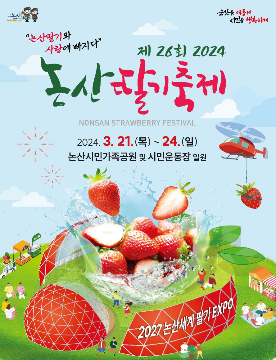 제26회 ‘2024논산딸기축제’는 2027 세계 엑스포를 향하여 만전을 기하고 있다고 합니다.