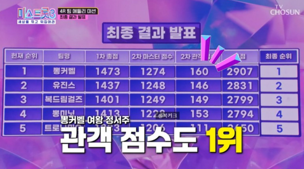 미스트롯3, 4라운드는 팀전, 여왕전으로 경연이 되어 합격자, 탈락자가 발표가 되었습니다.