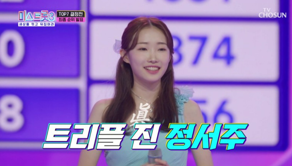 미스트롯3 정서주 양이 TOP7 결정전에서 다시 한번 1위에 오르며 미스트롯 3 우승 도전에 박차를 가했습니다.