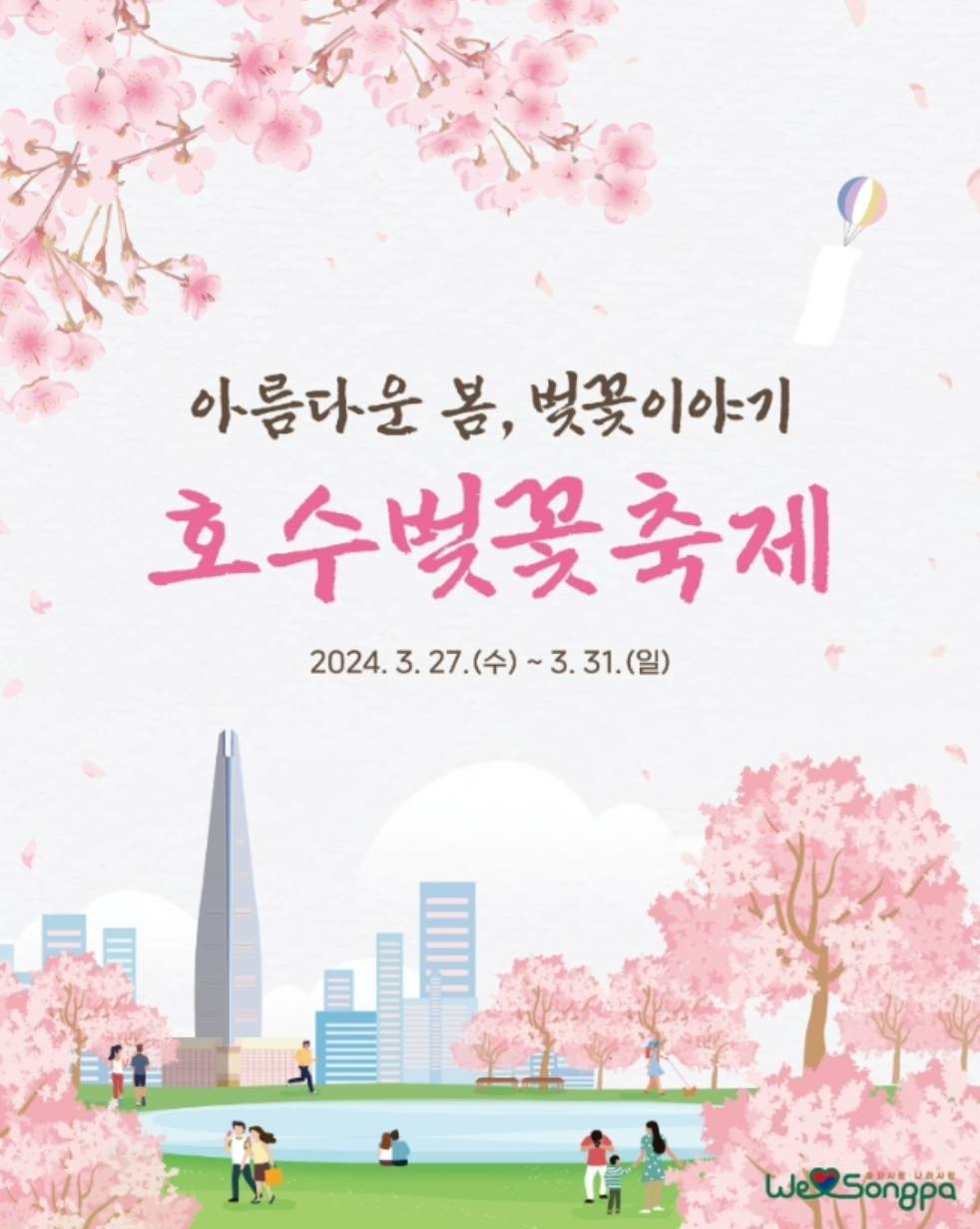 석촌호수 벚꽃축제. 아름다운 봄, 벚꽃치야기 호수 벚꽃축제는 송파구 석촌호수에 핀 벚꽃촤 공연이 펼쳐집니다.