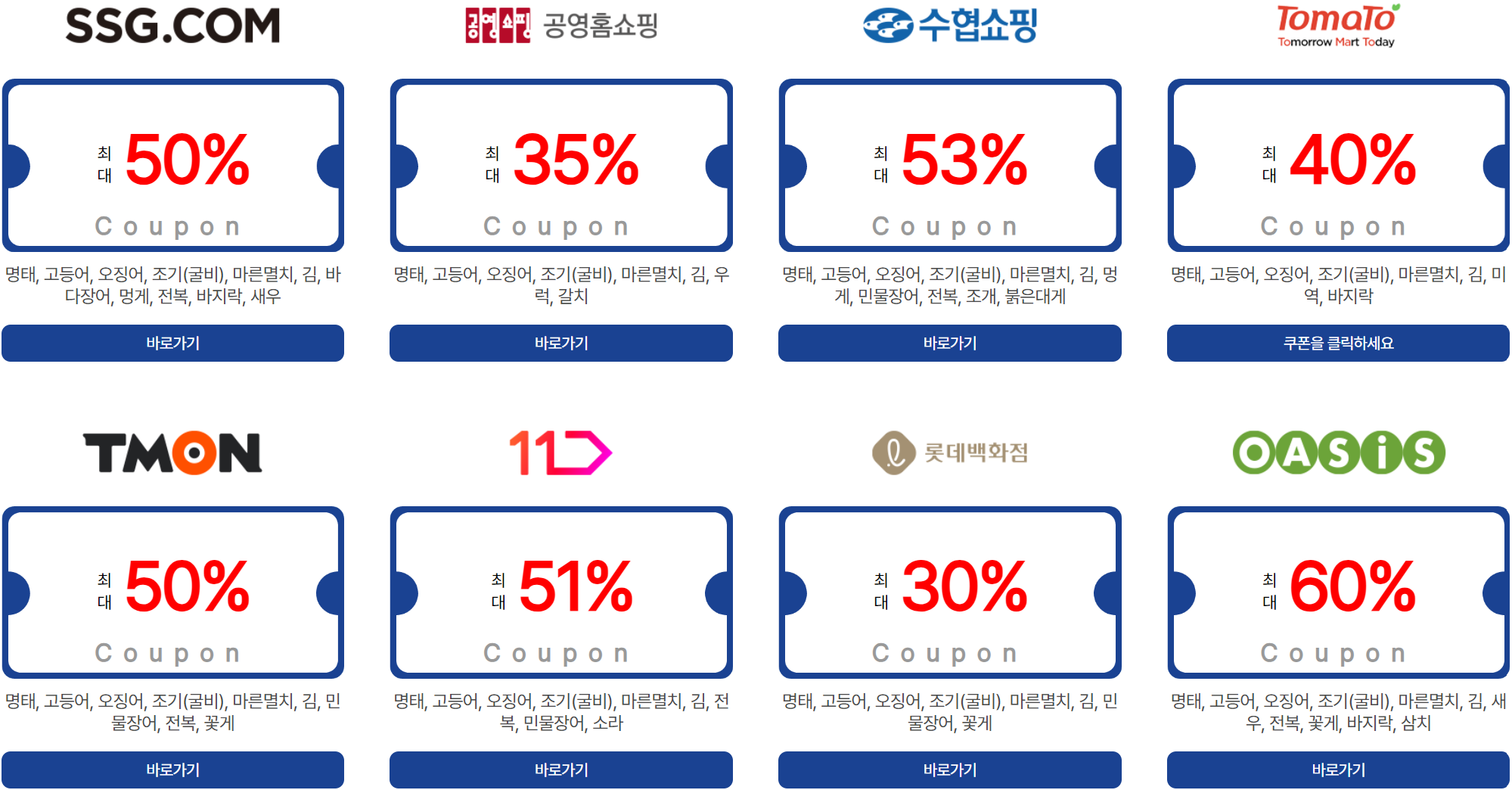 모르면 손해보는 수산대전 할인 쿠폰 받으러 출동하세요~