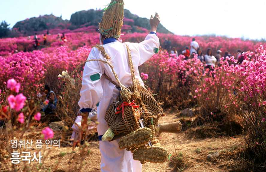 영취산 진달래축제는 개막식도 한다고 하는데요, 3월 23일 오전 11시 흥국사 수변공원 특별무대에서 유명인의 축하공연과 함께 열리며, 시민과 관광객이 장기자랑을 뽐내는 '진달래 꽃맵시 선발대회', KBS '전국노래자랑'도 준비되어 있다고 합니다.