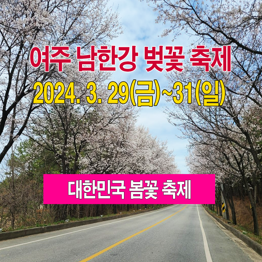 오늘은 다가오는 3월 29일(금)부터 31(일)까지 사흘간 열리는 2024 여주 흥천 남한강 벚꽃축제 꽃소식 전해드렸습니다.