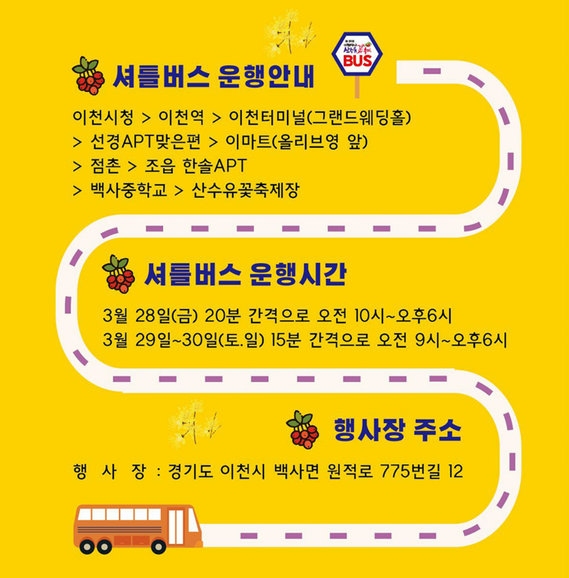 / 이천 백사 산수유꽃축제 셔틀버스 안내