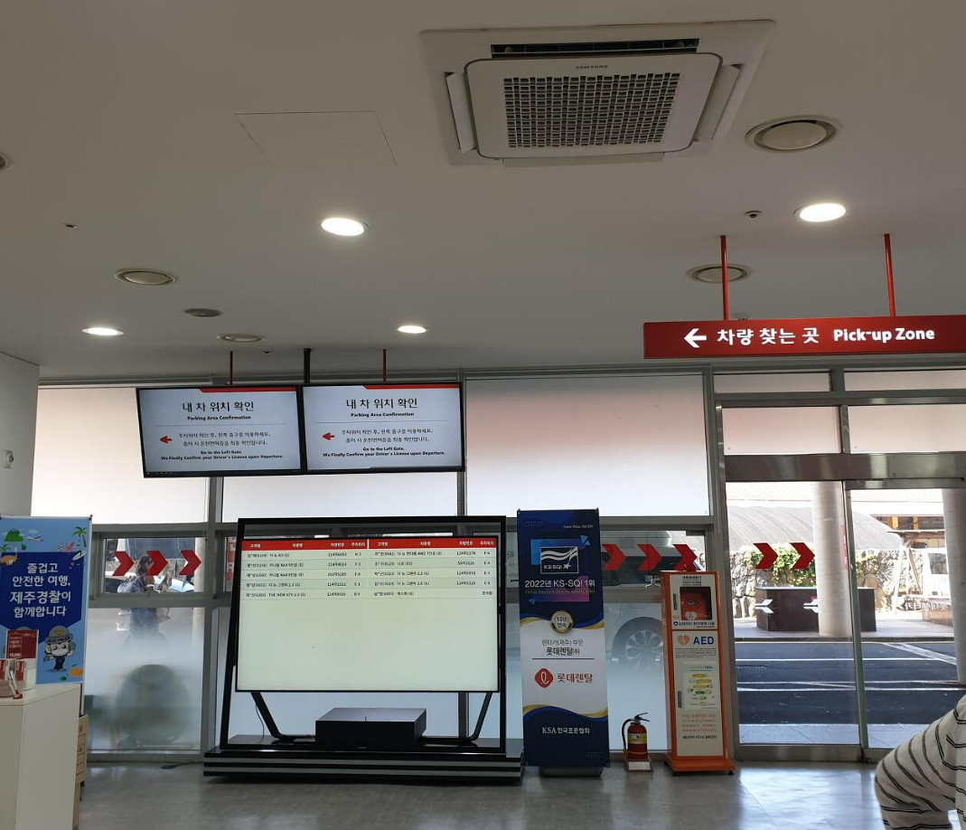 전광판에서 주차구역 확인하고 차에 탑승하신 후 출구로 이동하여 운전면허증 확인을 진행합니다.