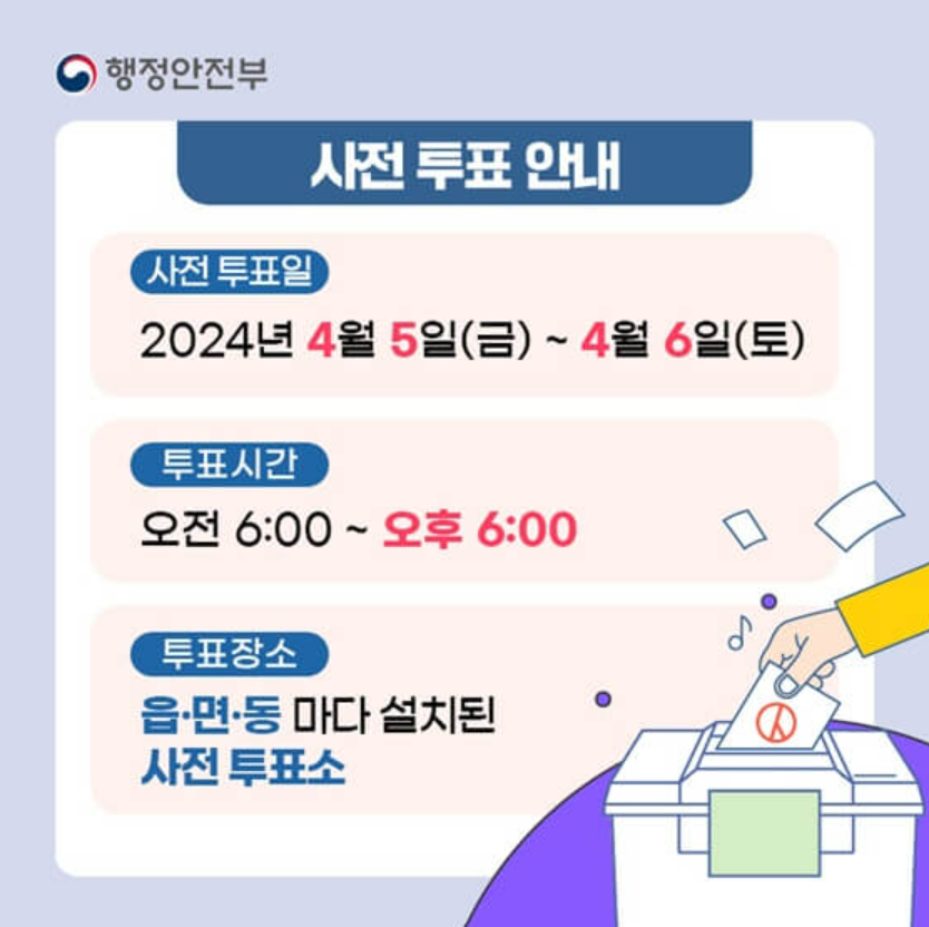 - 투표일 : 2024년 4월 5일 (금) ~ 4월 6일(토)