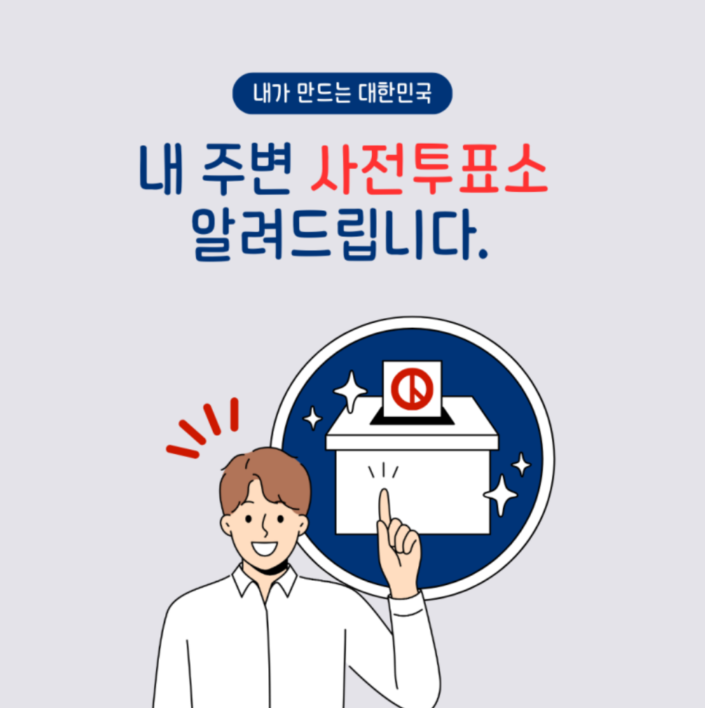제22대 국회의원 선거가 얼마 남지 않았습니다. 오늘은 내 주변 사전 투표소 확인하는 방법을 알려드리도록 하겠습니다. 사전투표는 4월 5일~6일에 실시됩니다. 선거 당일 투표가 어려우신 분들