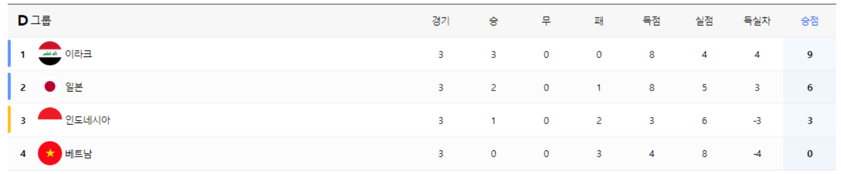 ♣ D조 16강 진출팀 - 이라크, 일본, 인도네시아