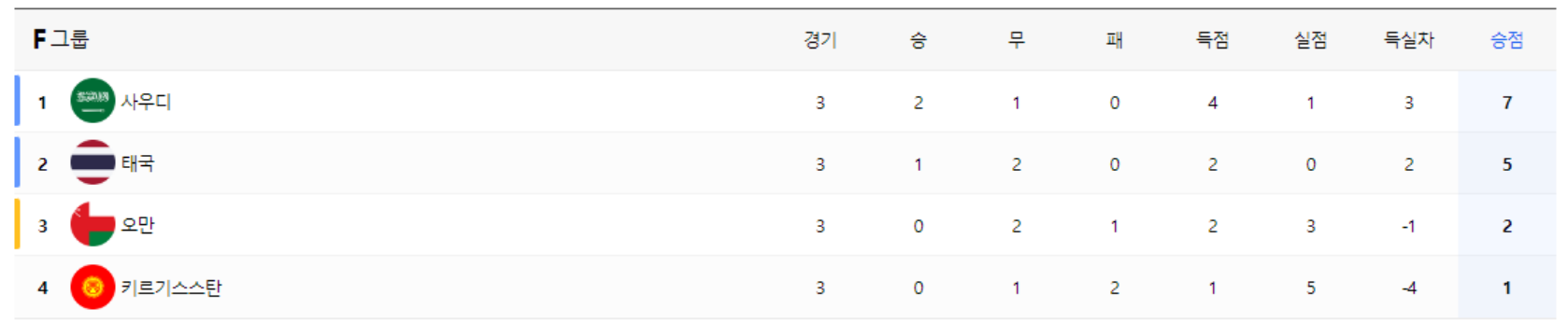 ♣ F조 16강 진출팀 - 사우디아라비아, 태국