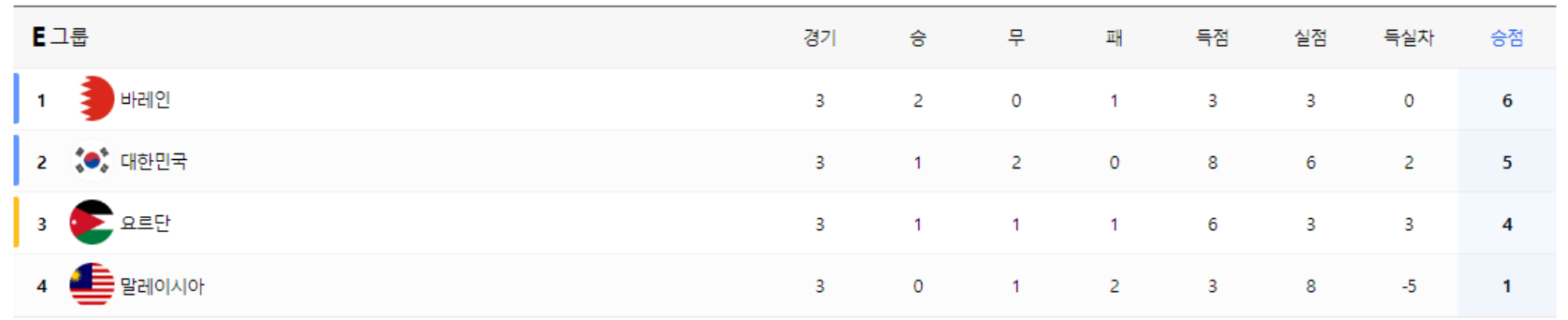 ♣ E조 16강 진출팀 - 바레인, 대한민국, 요르단