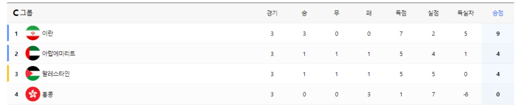 ♣ C조 16강 진출팀 - 이란, 아랍에미리트, 팔레스타인