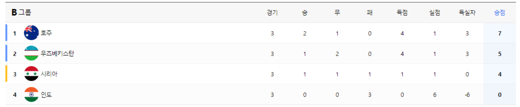 ♣ B조 16강 진출팀 - 호주, 우즈베키스탄, 시리아